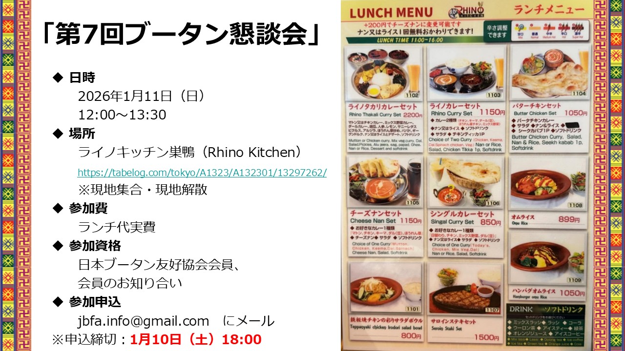 2026年1月11日(日)に、ライノキッチン巣鴨(Rhino Kitchen)にて、第7回ブータン懇談会が開催されました。
