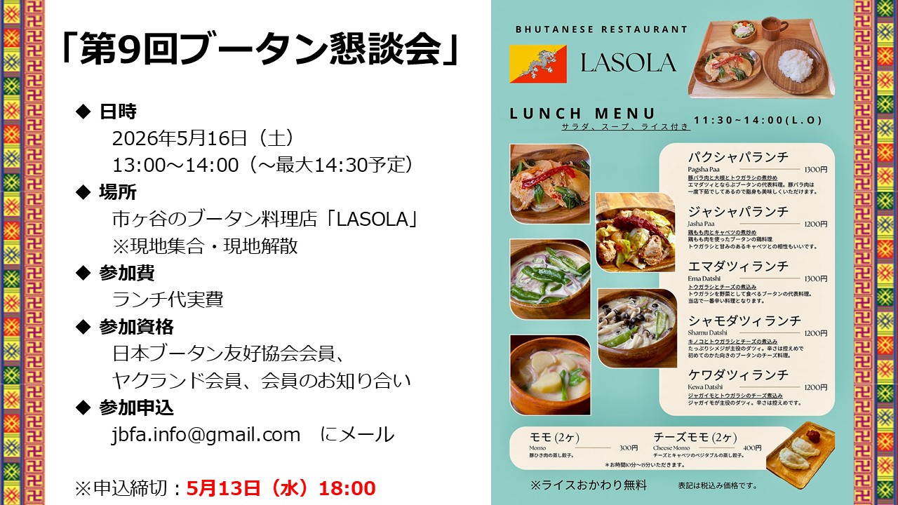 ※第9回ブータン懇談会は、外務省「日・ブータン外交関係樹立40周年(2026年)記念事業」の認定事業に申請中です。